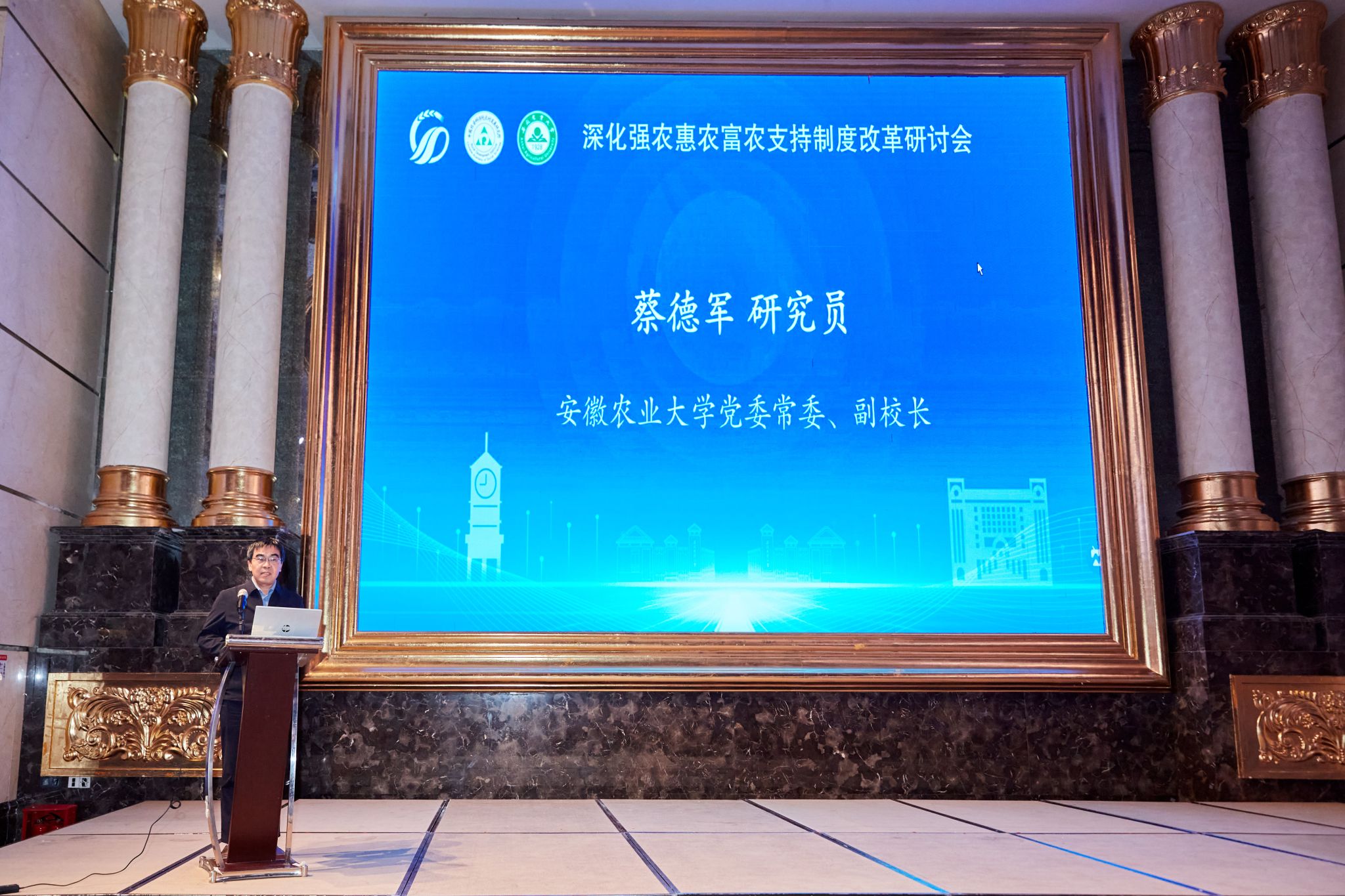 本网讯 11月8日—9日,由中国国外农业经济研究会、中国社会科学院农村发展研究所、安徽农业大学、安徽省农业领域科技创新综合智库联合主办的深化强农惠农富农支持制度改革研讨会在安徽合肥成功举办。校党委常委、副校长蔡德军出席开幕式并致辞。来自全国各地的专家、学者及高校师生代表160余人齐聚合肥,深入学习党的二十届三中全会精神,开展强农惠农富农支持制度改革学术成果研讨交流,助力我国农业经济高质量发展和中国式农业农村现代化建设。