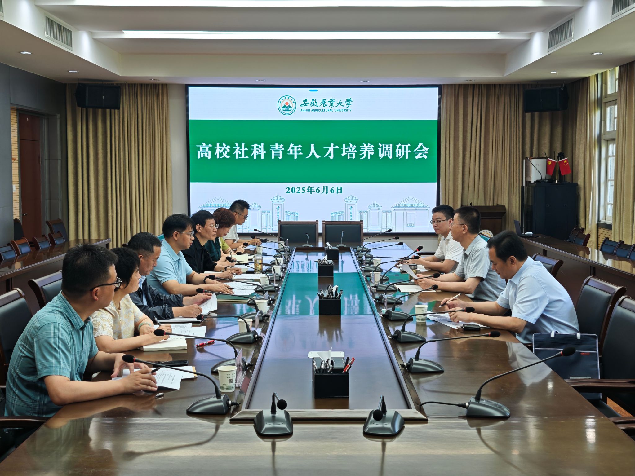 本网讯 6月6日上午,省社科联一级巡视员江涛来校调研交流,并主持召开高校社科青年人才培养调研会议。校党委常委、副校长吴祥为出席会议。省社科联学会工作处处长张浩淼、学会工作处四级调研员曹刚,中国科学技术大学、合肥工业大学、安徽大学、合肥师范学院、巢湖学院、安徽新华学院以及我校社科管理部门负责人参加会议。