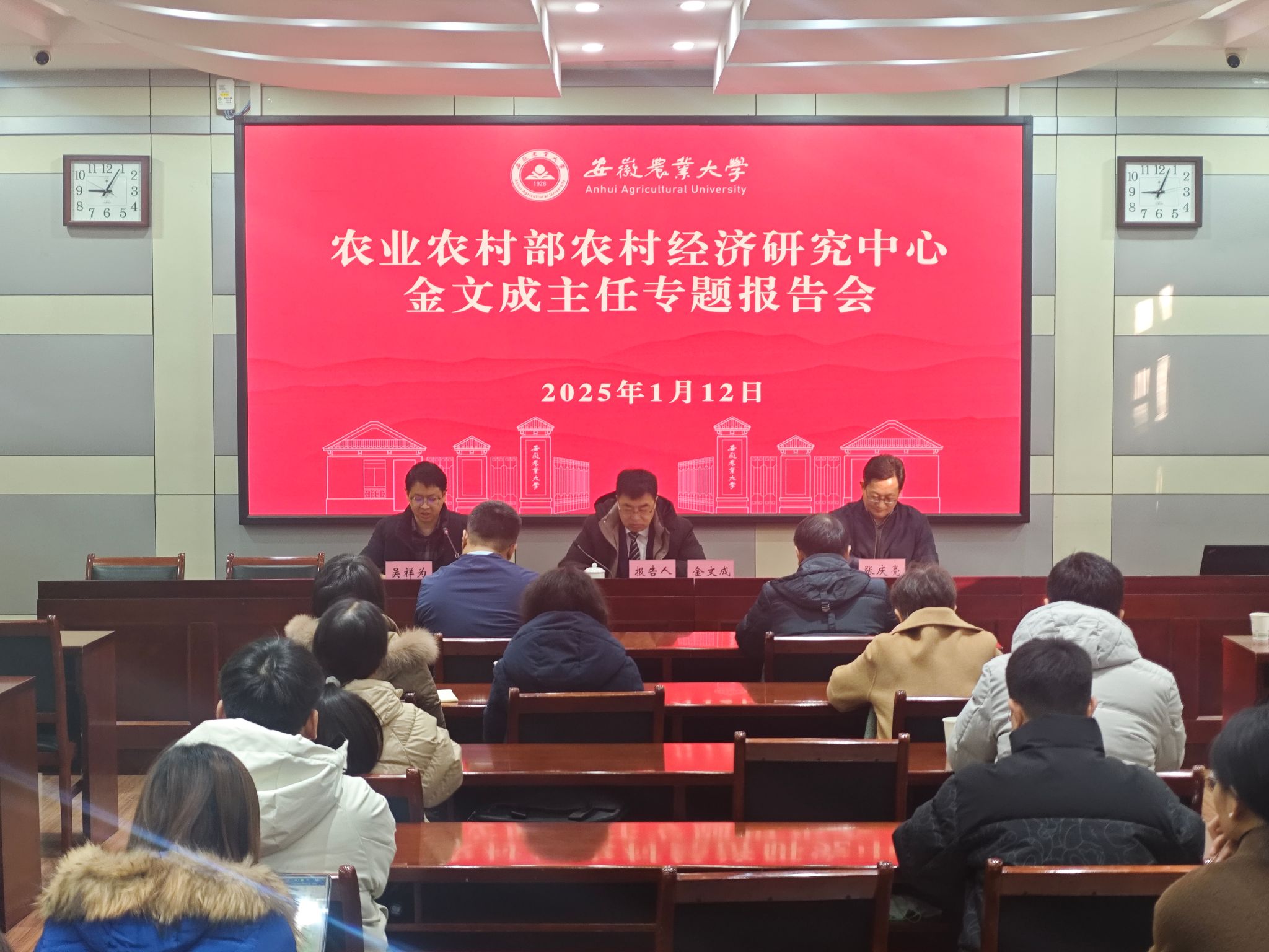 本网讯 为深入学习贯彻党的二十届三中全会精神,1月12日上午,学校邀请农业农村部农村经济研究中心金文成主任来校作专题报告。校党委书记张庆亮出席报告会。校党委常委、副校长吴祥为主持报告会。